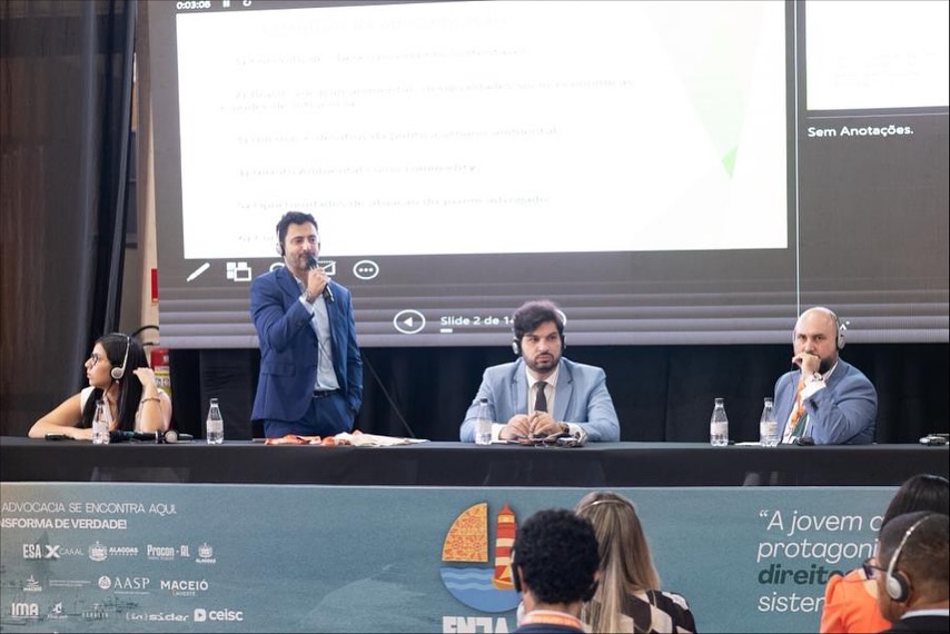 A Presidente Nathália Catão, o ex-Presidente Victor Silva e o Secretário-Geral Bruno Kiefer, da APROMAL, e o Procurador de Coruripe, Valério Beltrão, participaram do XXII Encontro Nacional da Jovem Advocacia (ENJA), que reuniu profissionais de todo o país para debater os principais desafios e perspectivas da advocacia contemporânea.